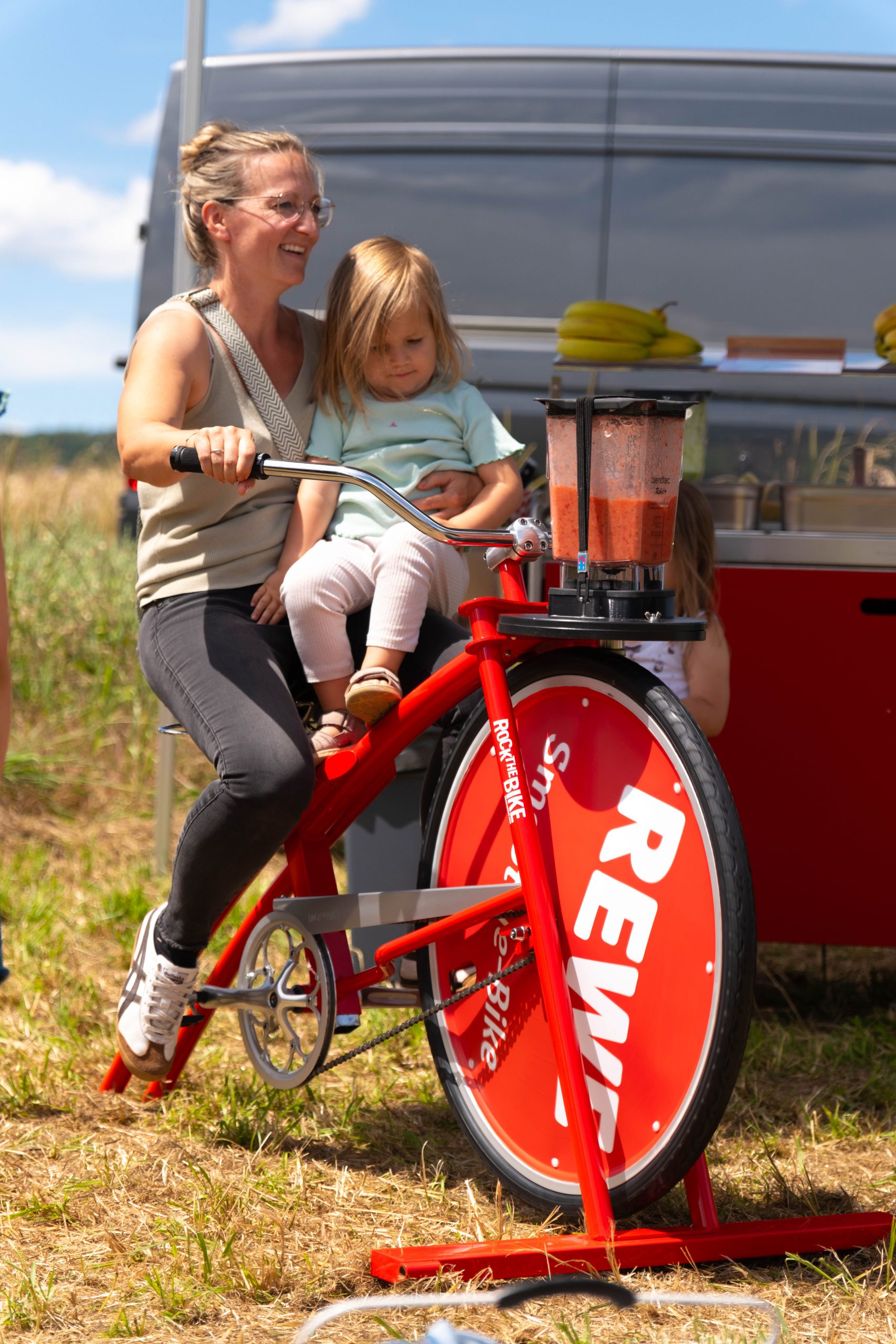 Am Sonntag starten wir um 11:30Uhr. REWE sponsert wieder das Smoothie Bike, mit dem man sich seinen eigenen Smoothie erstrampeln kann.